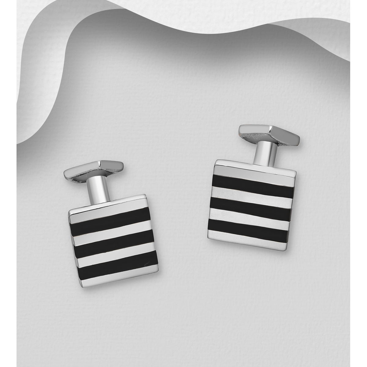 Silver Cuff Links, Decorated with Resin
