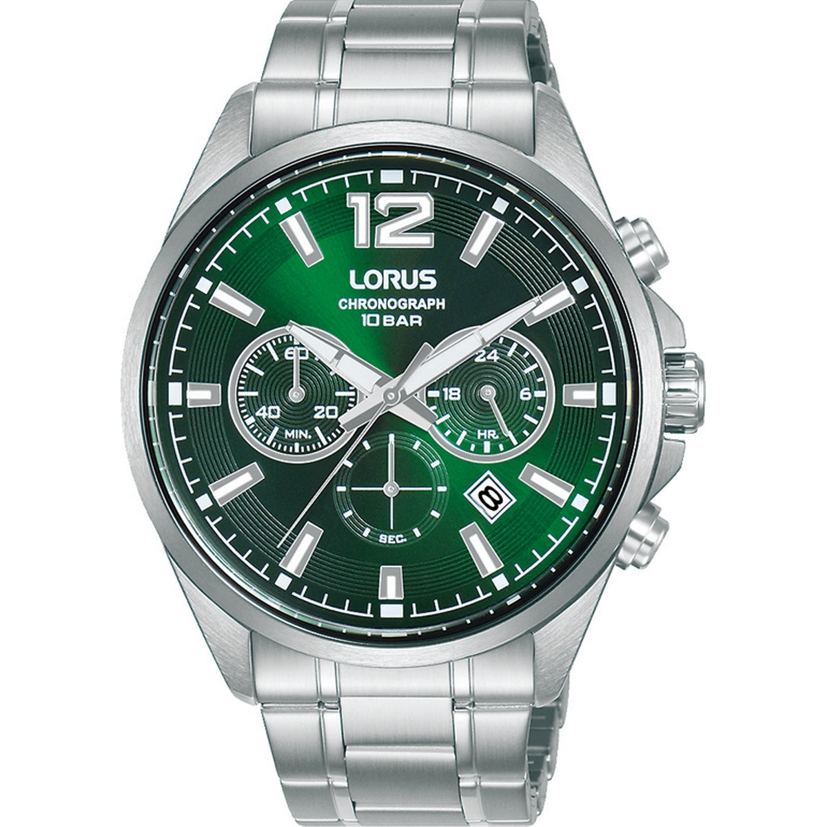 LORUS QUARTZ CHRONOGRAPH GENTS STAINLESS STEEL GREEN DIAL BRACLET WATCH