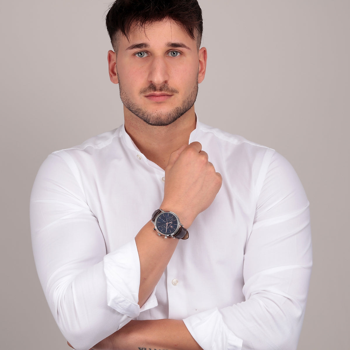 MASERATI EPOCA 42MM CHRONO BLUE DIAL BROWN STRAP