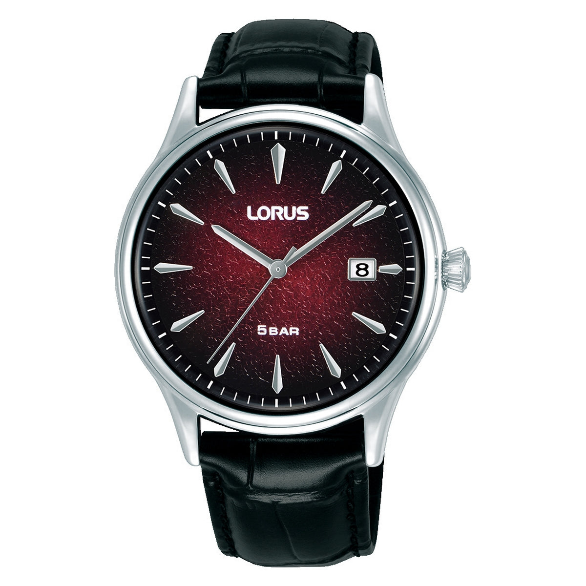 LORUS QUARTZ GENTS STAINLESS STEEL BURGUNDY DIAL STRAP WATCH