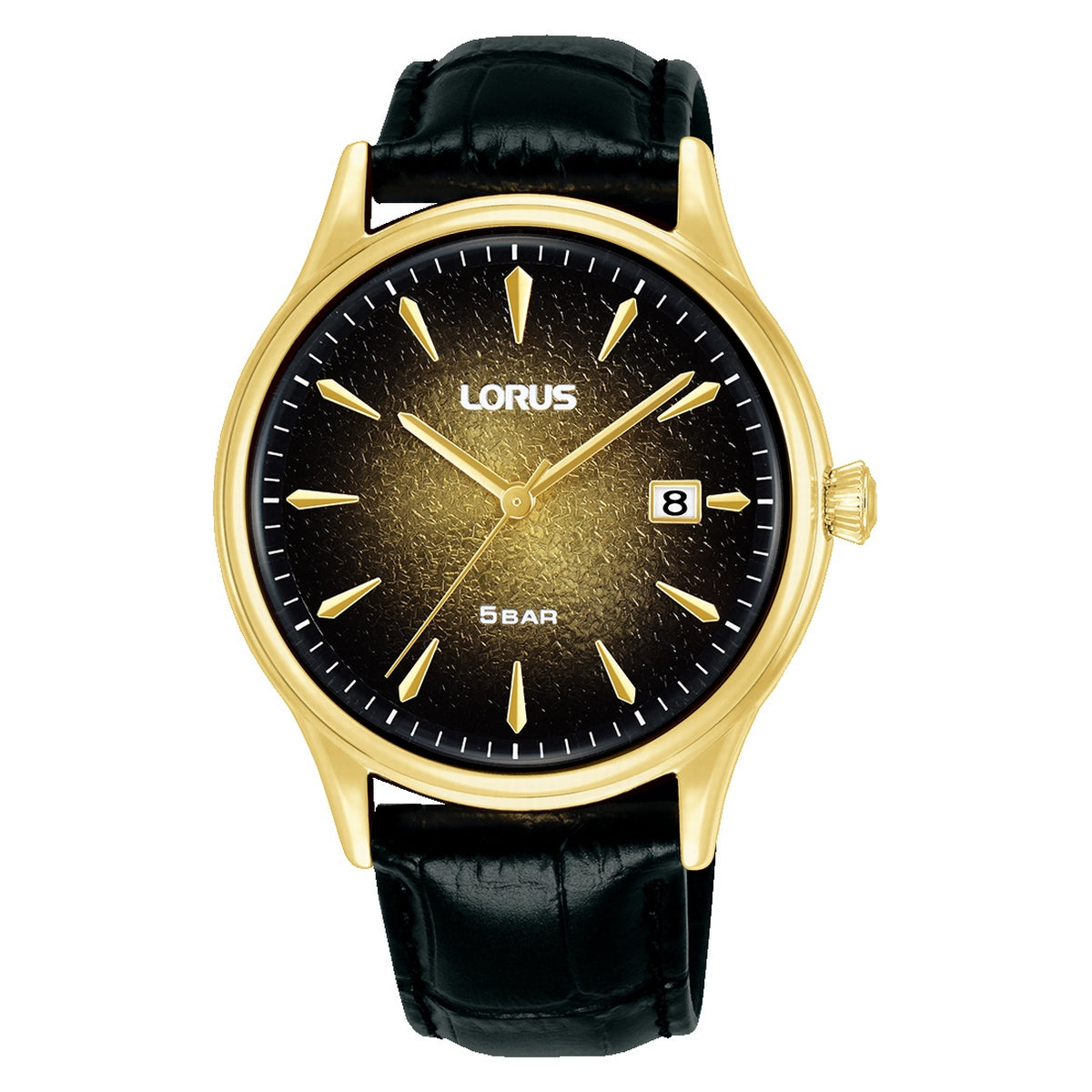 LORUS QUARTZ GENTS GOLD PLATED BLACK DIAL STRAPS WATCH