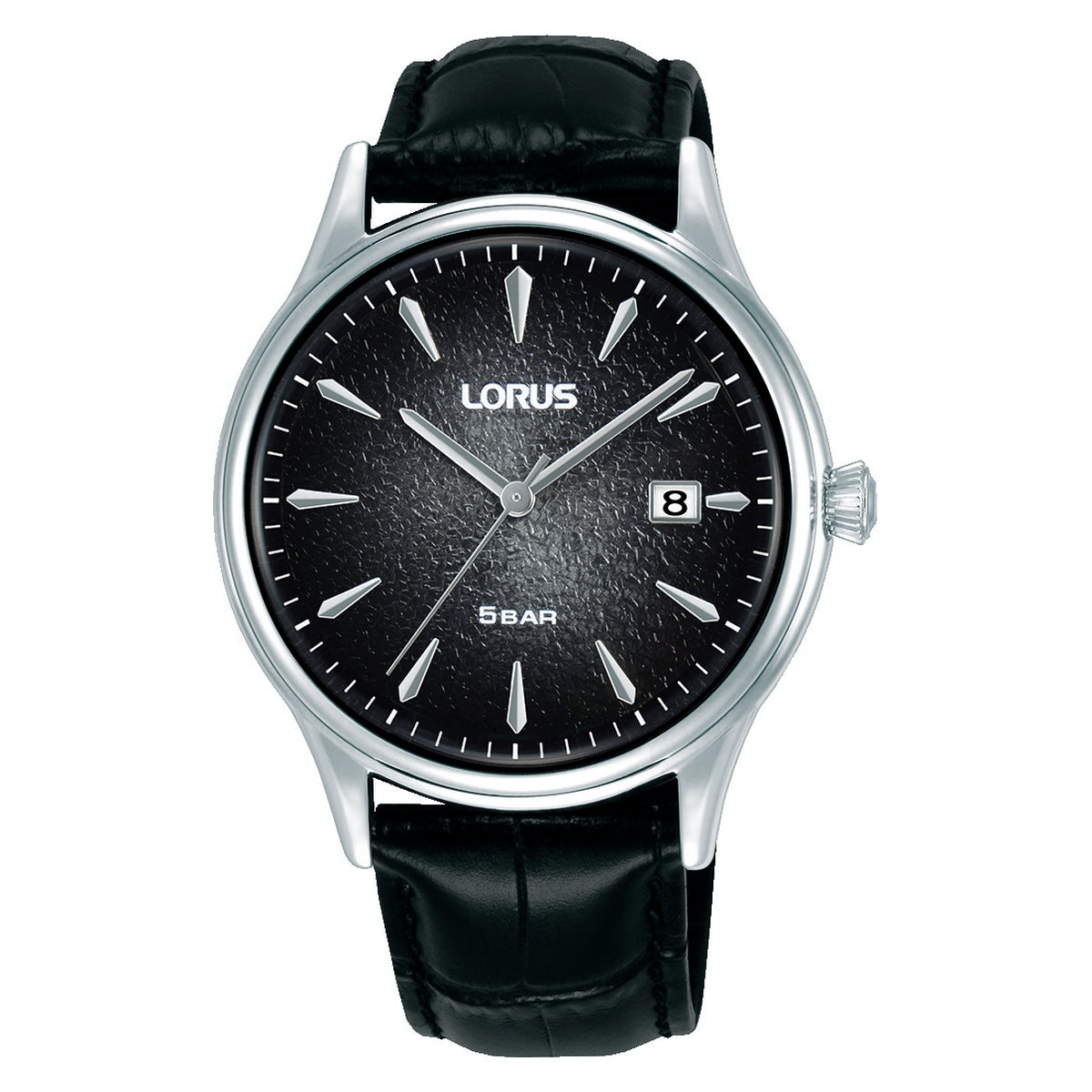 LORUS QUARTZ GENTS STAINLESS STEEL BLACK DIAL STRAP WATCH