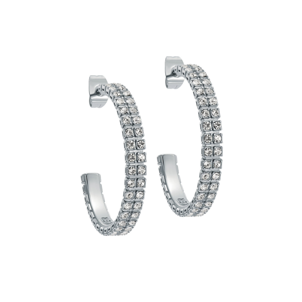ted baker mellia: medium double crystal hoop earrings silver tone, clear crystal