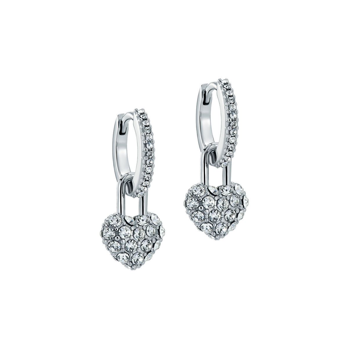 TED BAKER PARI: Pave Crystal Padlock Huggie Earrings Silver Tone Clear Crystal