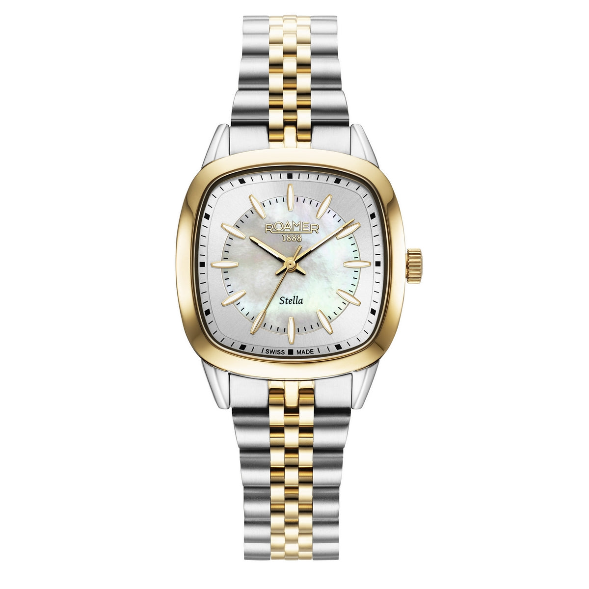 MOVEMENT TYPE: Quartz MOVEMENT CALIBRE: Ronda-763E-A2 BAND TYPE: Mixed Metal Bracelet CLASP TYPE: Deployment DIAL COLOUR: Mother of Pearl WATER RESISTANCE (Metres): 50 CASE WIDTH: 32mm CASE DEPTH: GLASS TYPE: Sapphire Crystal DATE FUNCTION: STONE TYPE: