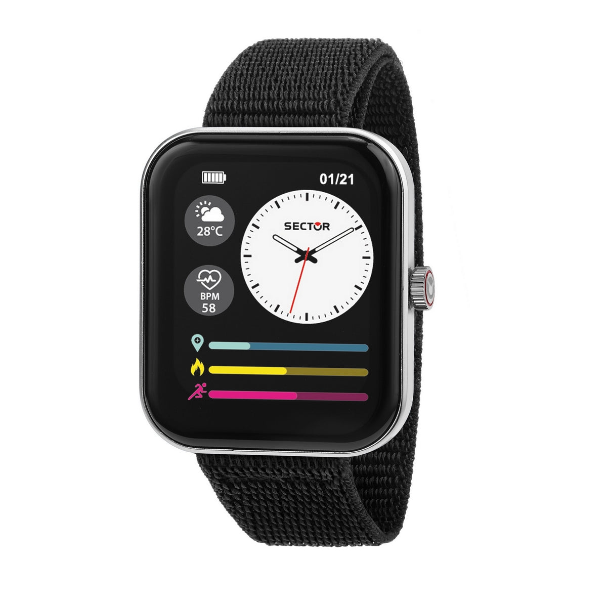 SECTOR S-03 PRO SMART 45x38MM DIGITAL BLACK NYLON STRAP Support: Android 6.0 or above, IOS 10.0 or above MOVEMENT TYPE: Smart Watch MOVEMENT CALIBRE: BAND TYPE: Plastic CLASP TYPE: Clip DIAL COLOUR: White WATER RESISTANCE (Metres): IP67 CASE WIDTH: 45mm CASE DEPTH: 13mm GLASS TYPE: Mineral Crystal DATE FUNCTION: Day and Date STONE TYPE: