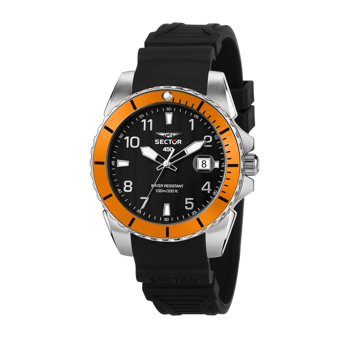 SECTOR 450 41MM 3 HAND BLK DIAL ORA BEZ BLK SILI ST WATCH