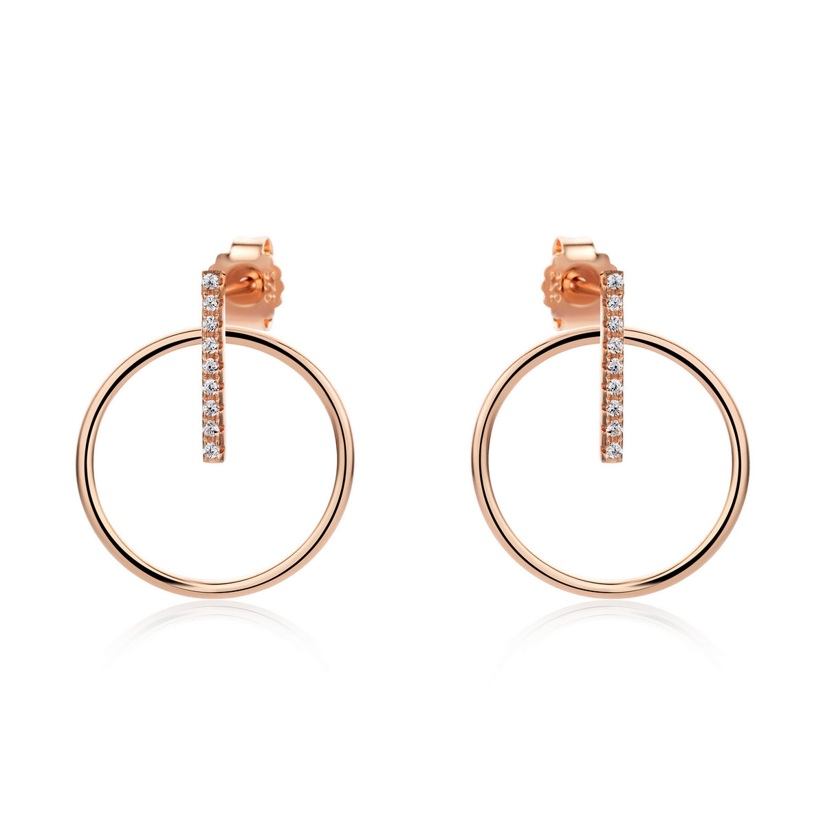 Circle Earrings with Fully Stoneset Intersecting Line of Cubic Zirconia in Rose Gold Sterling Silver
