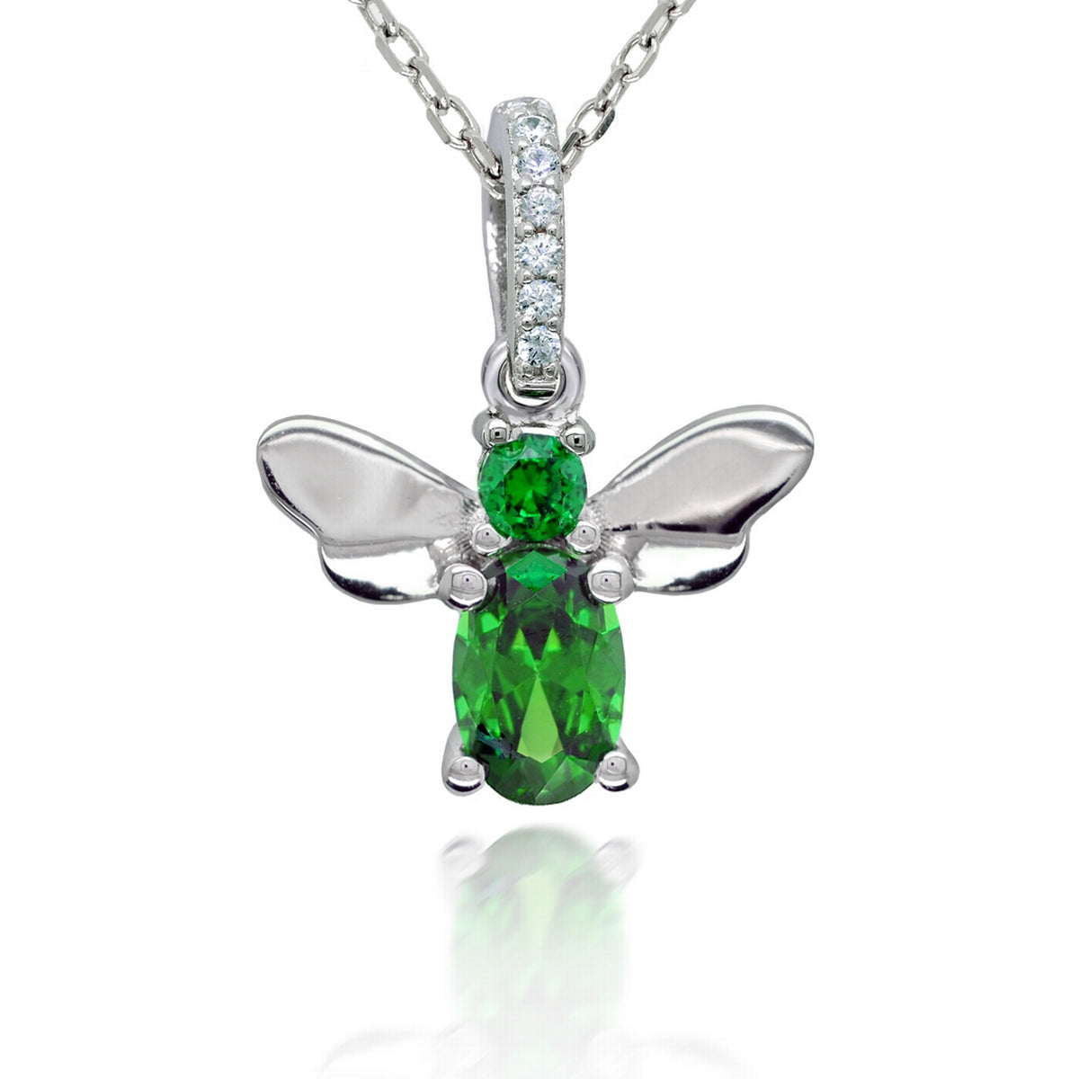 REAL EFFECT EMERALD LIKE STONE SET BEE PENDANT