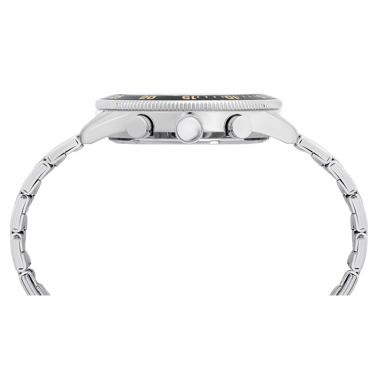 MOVEMENT TYPE: Quartz MOVEMENT CALIBRE: VD57 BAND TYPE: Mixed Metal Bracelet CLASP TYPE: Z-Clasp DIAL COLOUR: Green WATER RESISTANCE (Metres): 100 CASE WIDTH: 45mm CASE DEPTH: 11.9mm GLASS TYPE: Mineral Crystal DATE FUNCTION: Date Only STONE TYPE: