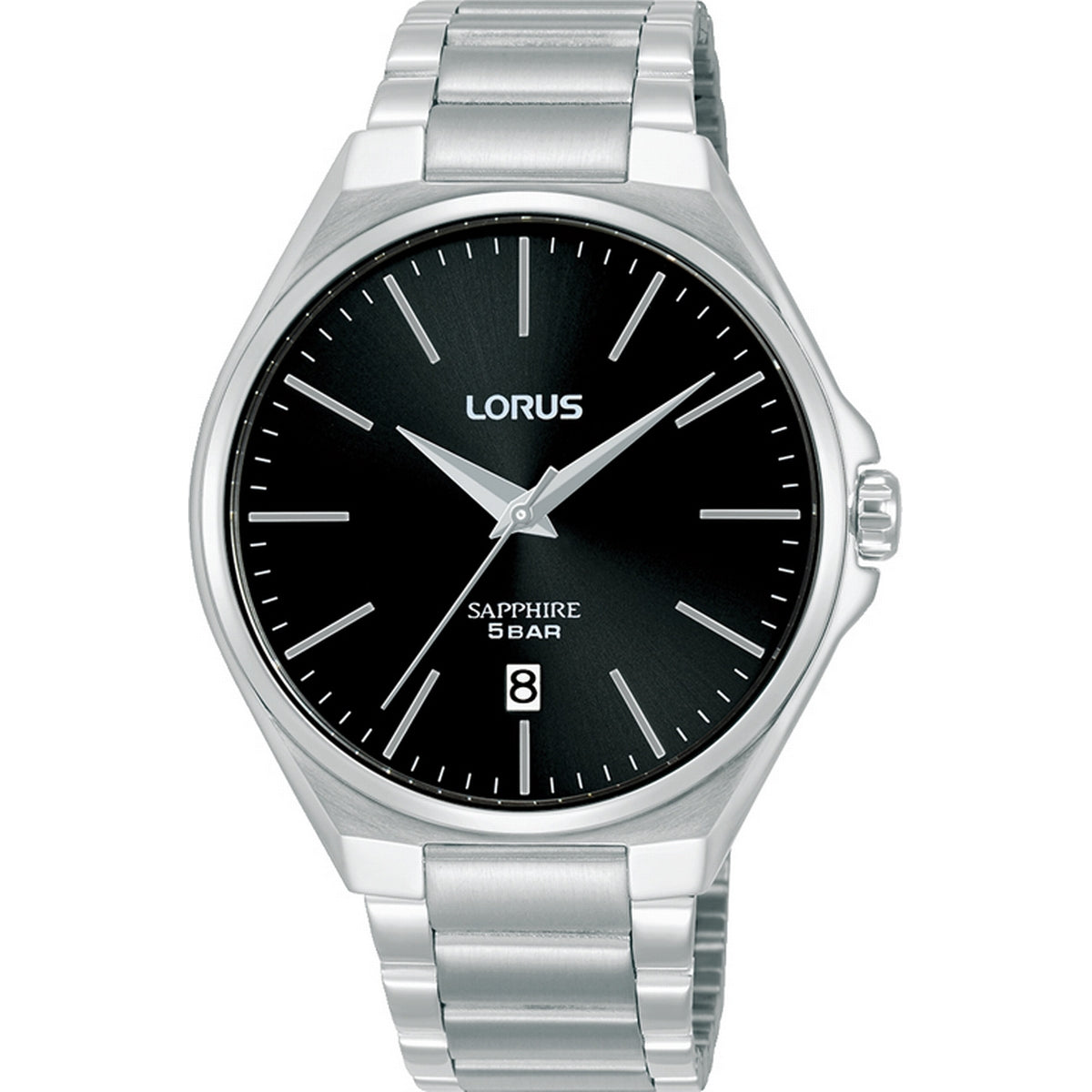 LORUS QUARTZ GENTS STAINLESS STEEL BLACK DIAL BRACELET WATCH