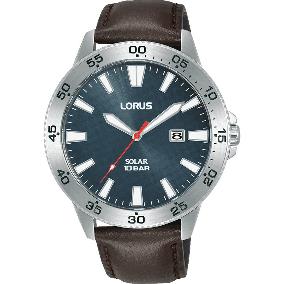 MOVEMENT TYPE: Solar MOVEMENT CALIBRE: AS32 BAND TYPE: Leather Strap CLASP TYPE: Buckle DIAL COLOUR: Blue WATER RESISTANCE (Metres): 100 CASE WIDTH: 43mm CASE DEPTH: GLASS TYPE: Mineral Crystal DATE FUNCTION: Date Only STONE TYPE: