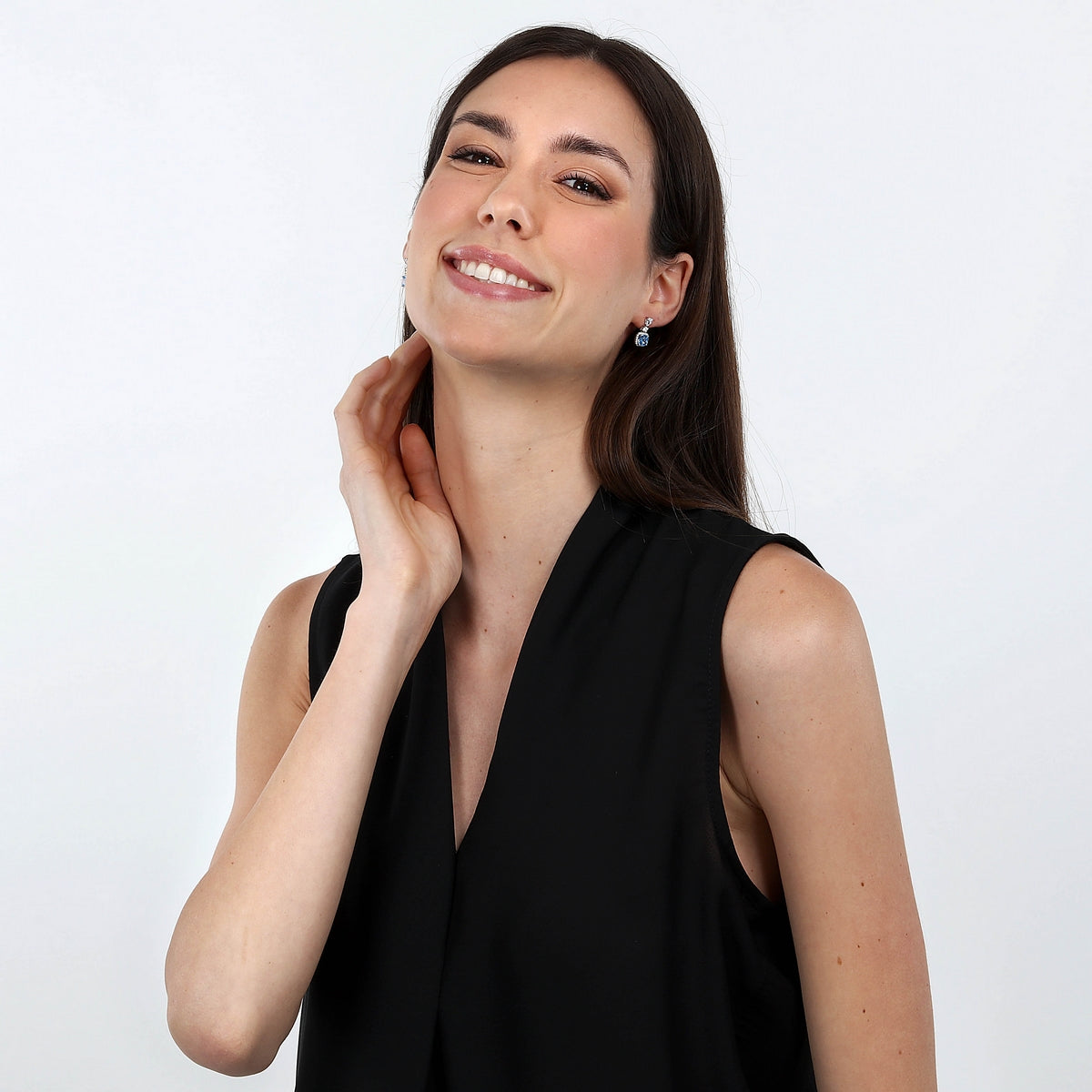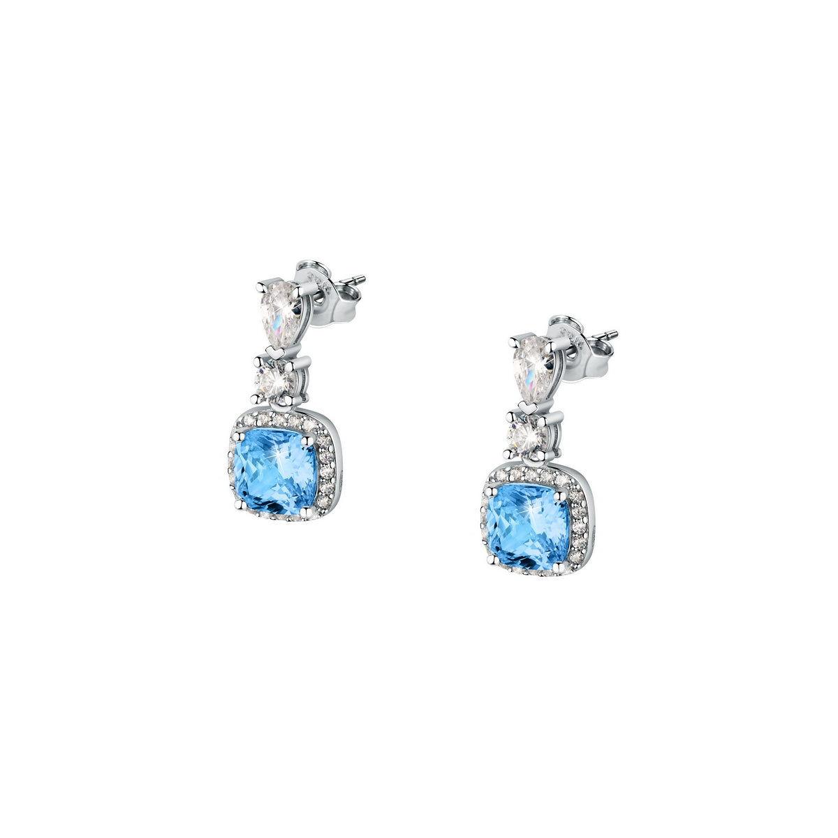 TESORI EARRINGS 925 AQUA BLUE CZ CUSHION