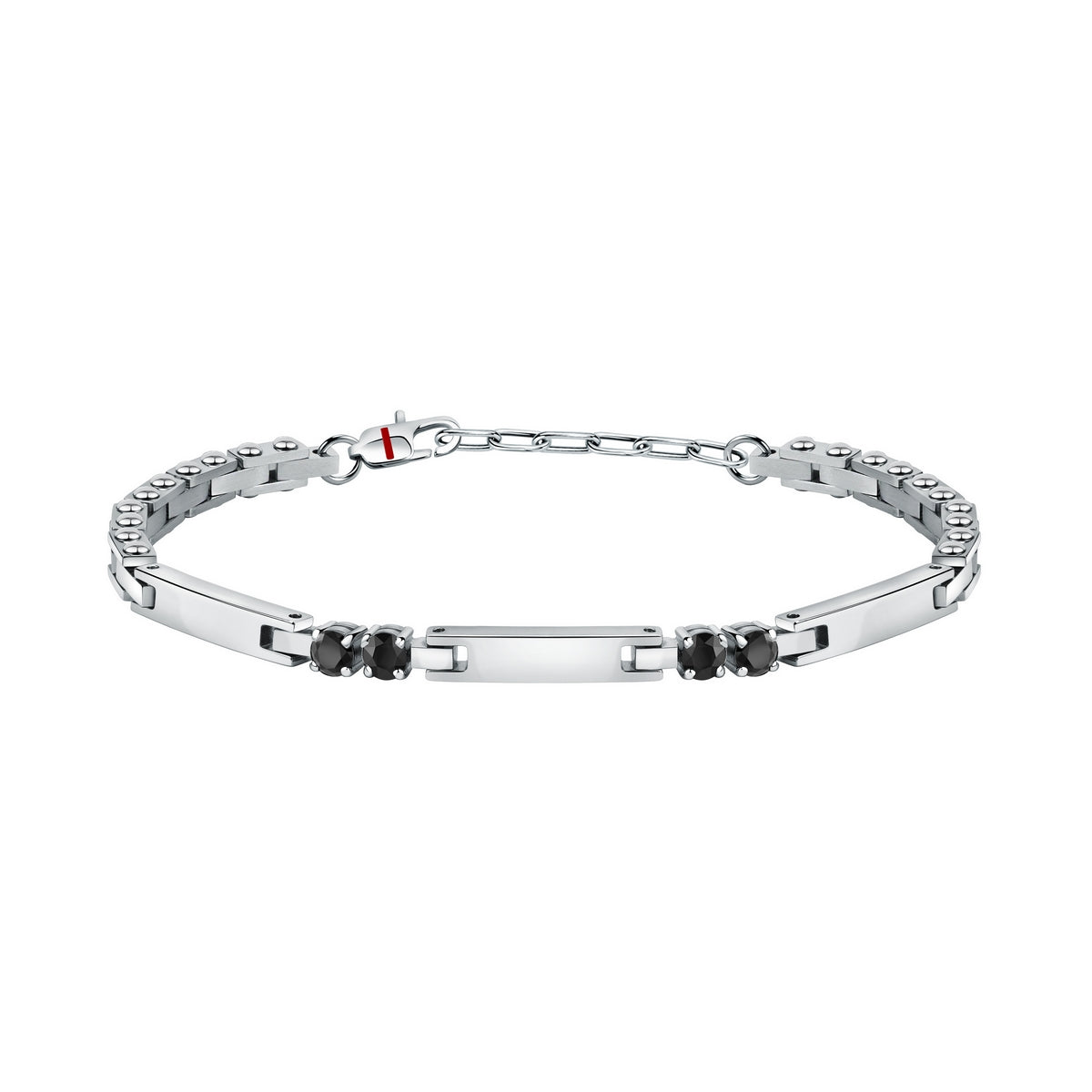 SECTOR TENNIS BRACELET STAINLESS STEEL TAG AND BLACK CZ 22CM