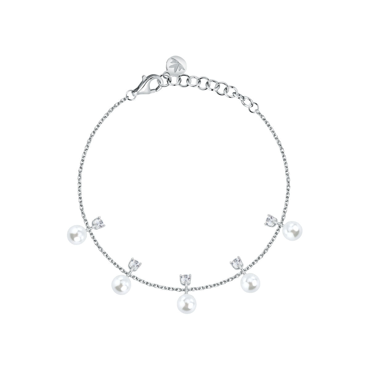 perla bracelet 925 silver 5 pearl wit cz highlights 19cm