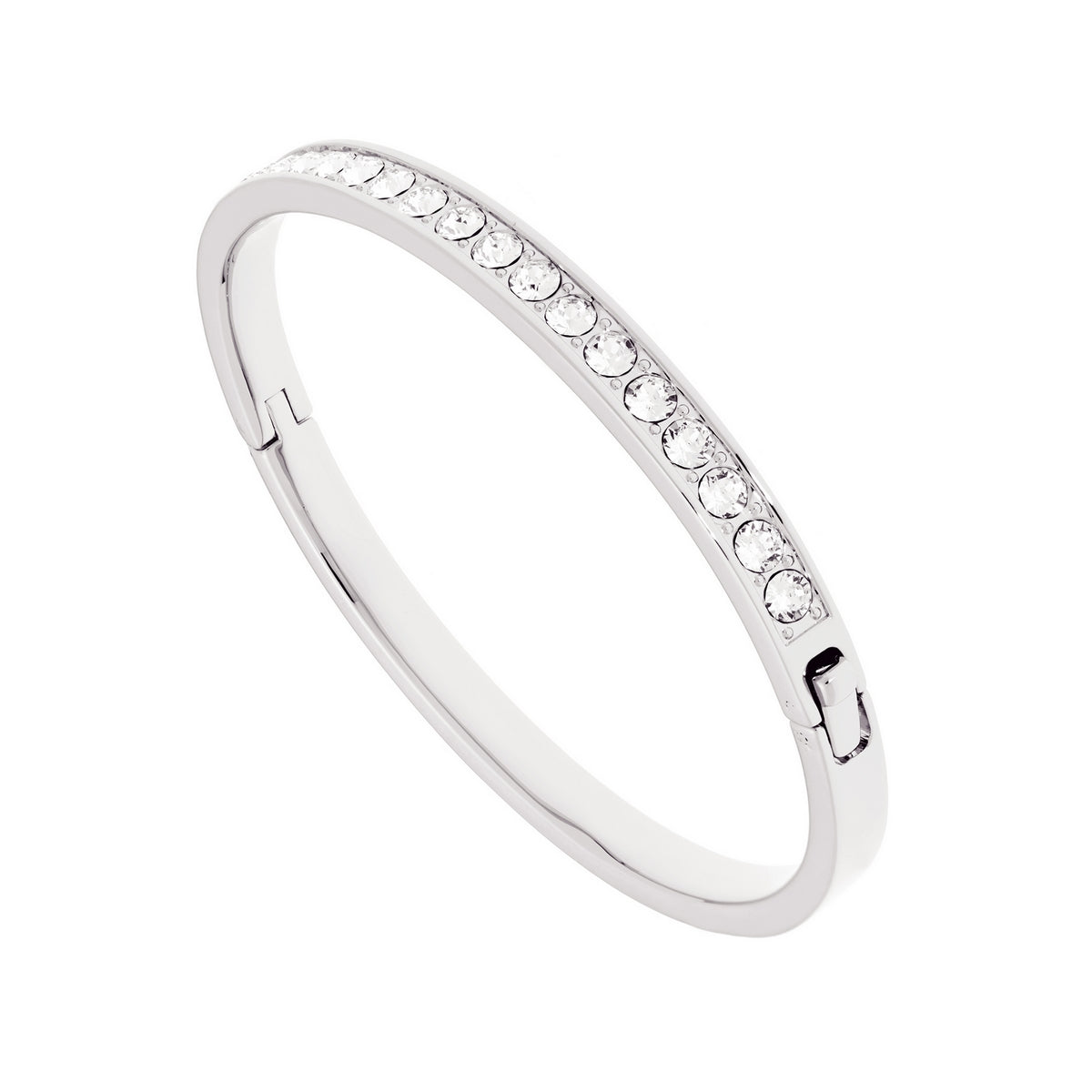 TED BAKER-CLEMARA: HINGE CRYSTAL BANGLE SILVER/CRYSTAL 70% Brass, 30% Crystal, 100% Silver Tone Plating JEWELLERY TYPE: Bangle METAL TYPE: PVD Plated Base Metal STONE TYPE: Swarovski Crystal CLASP TYPE: No Clasp JEWELLERY FAMILY: Hinge Bangle CHAIN LENGTH: