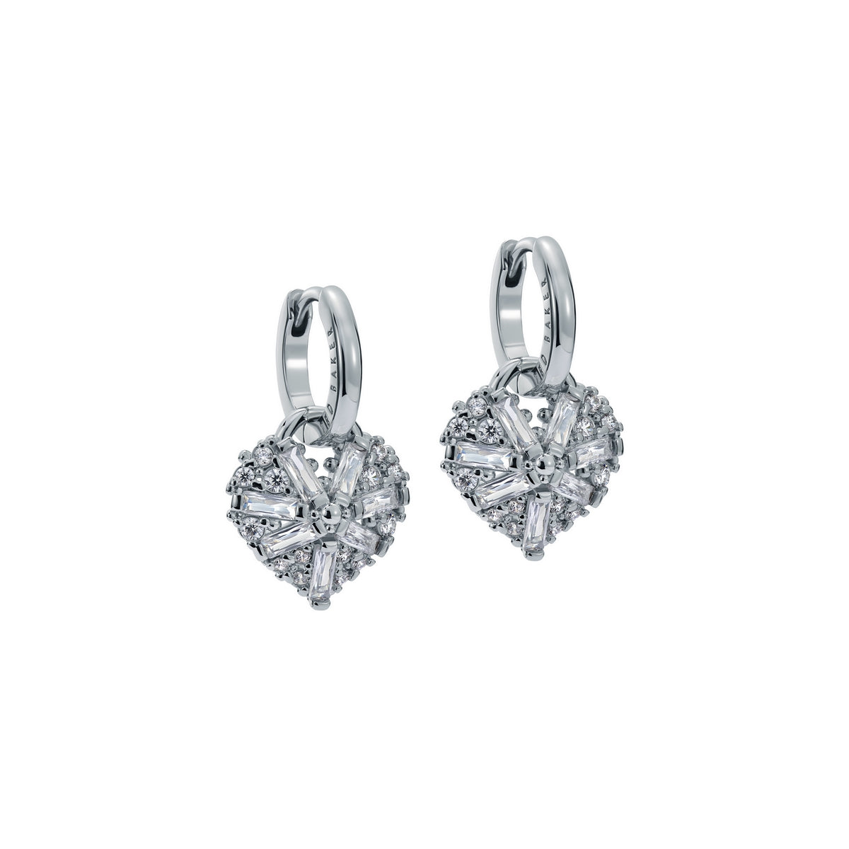 TED BAKER CHERISE: Crystal Cluster Heart Huggie Drop Earrings Silver Tone