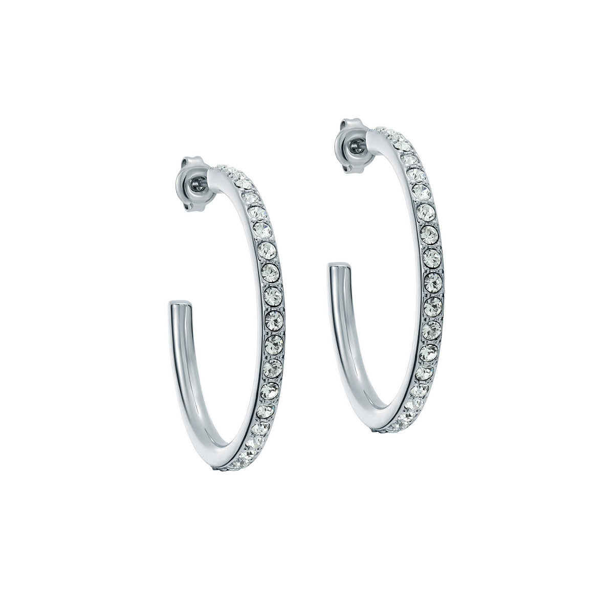 TED BAKER CLANCI: Medium Crystal Silver Tone Hoop Earrings