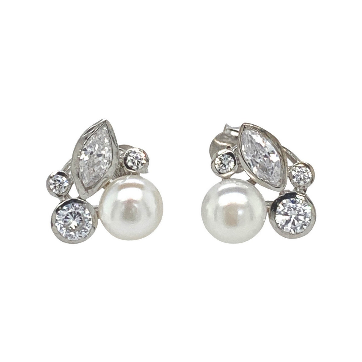 Silver Cluster Earrings with Freshwater Pearl and CZ