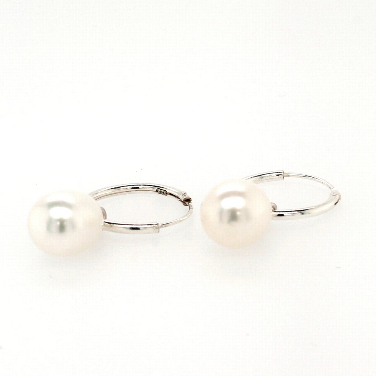 silver freshwater teardrop pearl sleeper earrings 14mm