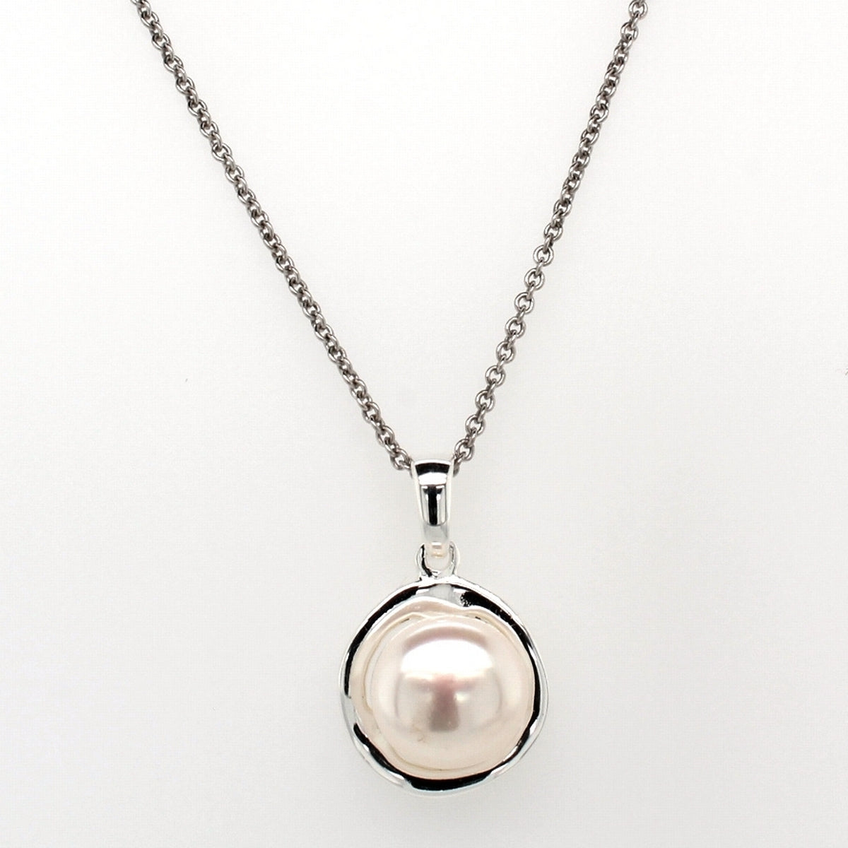 Silver Pearl Plain Round Pendant 9mm on 45cm Chain A