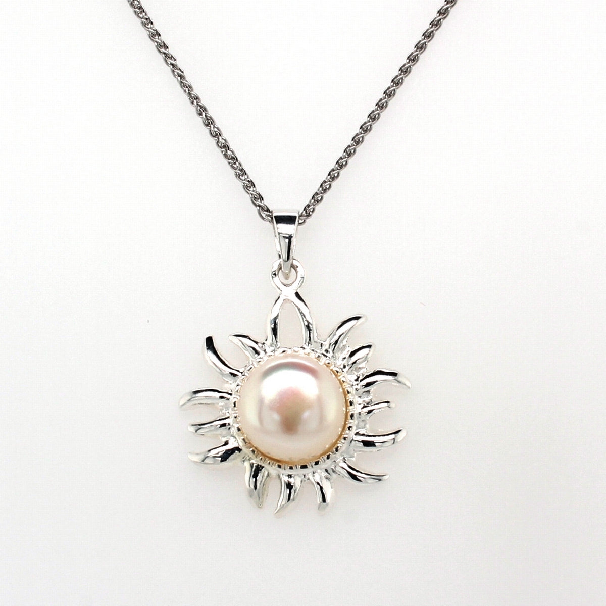 Silver Pearl Sunflower Pendant 8.5mm on 45cm Chain A